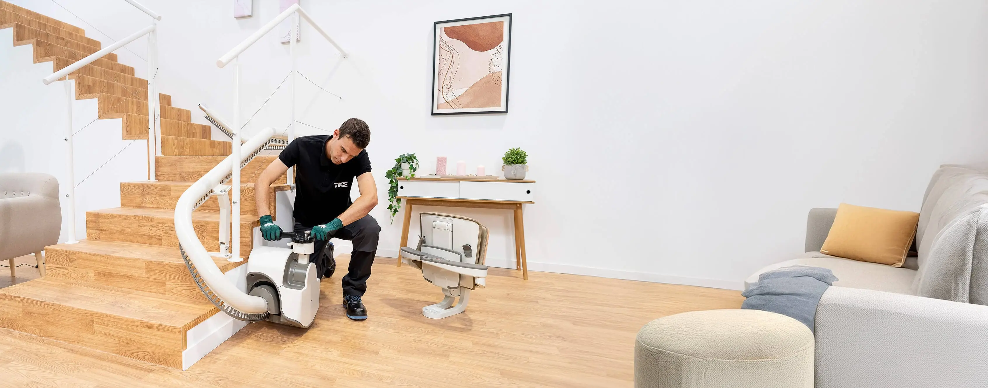 Seit 1957 steht TK Home Solutions (ehemals ThyssenKrupp Elevator) für Qualität, Sicherheit und Zuverlässigkeit. Mit über 40.000 zufriedenen Kunden deutschlandweit bieten wir schnelle Reaktionszeiten, moderne Technik und fachmännische Reparaturen für Treppenlifte aller Marken und Modelle. Unser erfahrenes Team sorgt dafür, dass Ihr Sitzlift schnell wieder einsatzbereit ist. Ganz gleich, ob Sie bereits Kunde sind oder nicht – als Treppenlift Hersteller und Anbieter reparieren wir jeden Treppenlift – kompetent und unkompliziert.