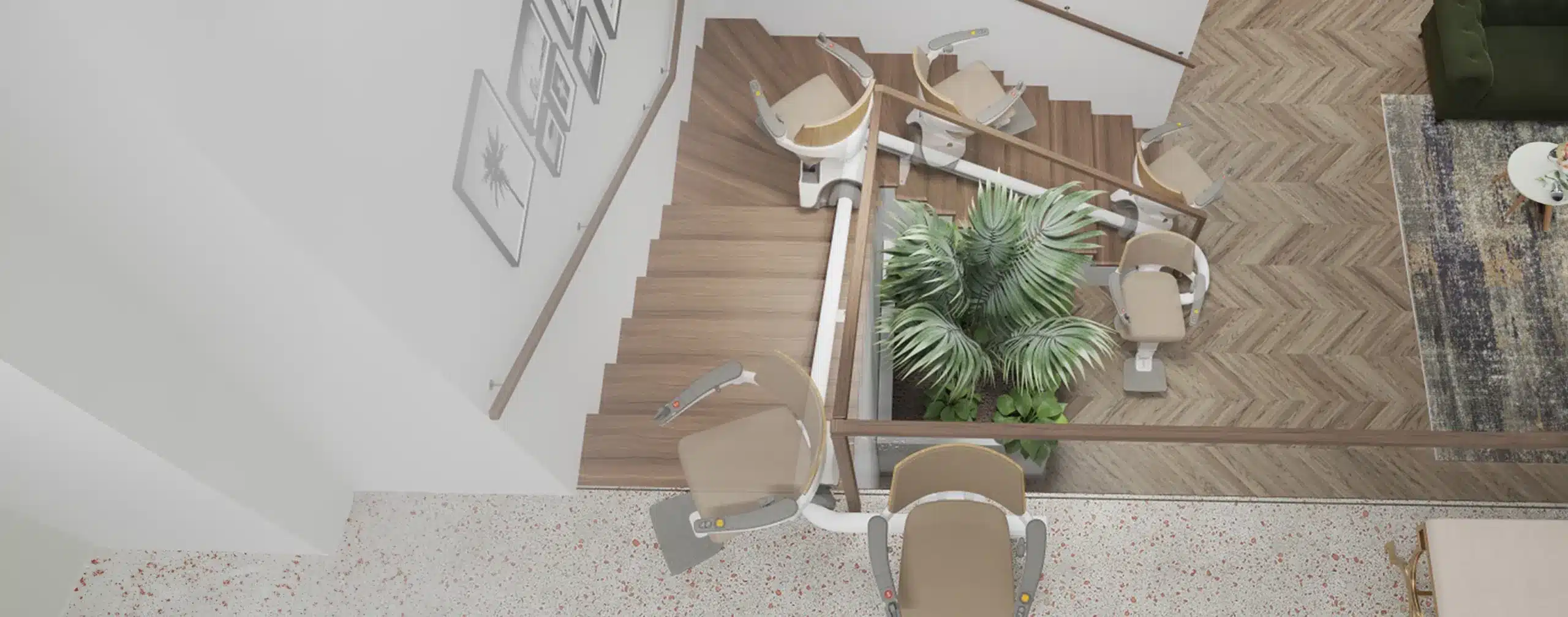 TK Home Solutions Treppenlifte verfügen über die ASL® Technologie. “ASL” steht für “Advanced Swivel and Leveling“ und bedeutet, dass sich der Sitz dreht, während er die Treppe herauf- oder herunterfährt. Die ASL® Technologie bietet auch auf schmalen Treppen großen Benutzern maximalen Komfort. Die Drehpunkte des Sitzes werden individuell angepasst und auf den Treppenverlauf programmiert, so dass sich der Benutzer stets in der bestmöglichen Sitzposition befindet. Zudem ermöglicht die ASL® Technologie, die Drehung des Sitzes unten oder oben an der Treppe. So wird es einfacher, auf dem Sitz Platz zu nehmen oder ihn zu verlassen.